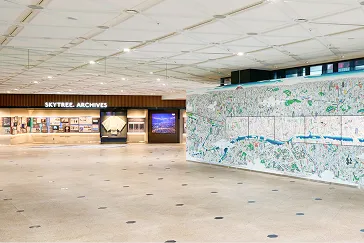 時代によってさまざまな発展を遂げてきた東京スカイツリーが建つ墨田区押上地区とその周辺地域の、人や文化、産業の歩みを、歴史年表とともに懐かしい風景写真や映像でご覧いただけるエリアです。また、展望台からの大迫力の8K眺望映像や電波塔としての役割など、東京スカイツリーの魅力も紹介します。