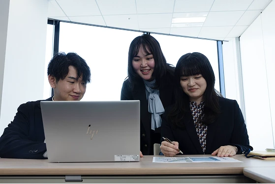 会社の方向性を描く経営戦略の立案や各部門と連携して会社全体の新しい仕組みの導入、業務改善などを行う経営企画担当。決算・税務・資産管理などを通じて、企業価値向上に向けた財務戦略を担う経理担当。そして社内システムの導入から運用・保守などを行うIT担当。3つの役割を通じて、事業運営を根幹から支えています。