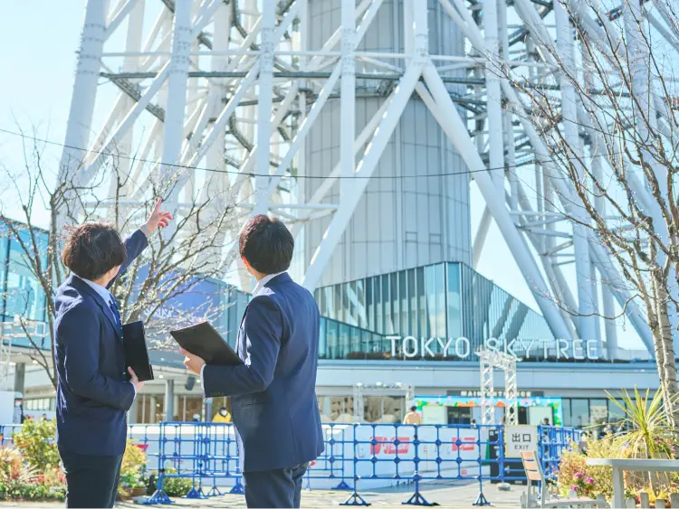 国内・海外外の旅行会社への営業や観光商品の企画、海外の旅行博・商談会への参加を通じて、東京スカイツリーへの誘客を行っています。また、オフィシャルパートナー企業との協業、貸切営業やイベントスペースの活用など、施設の魅力を最大限にいかす営業施策への取り組みを通じて、東京スカイツリーへの誘客を担っています。